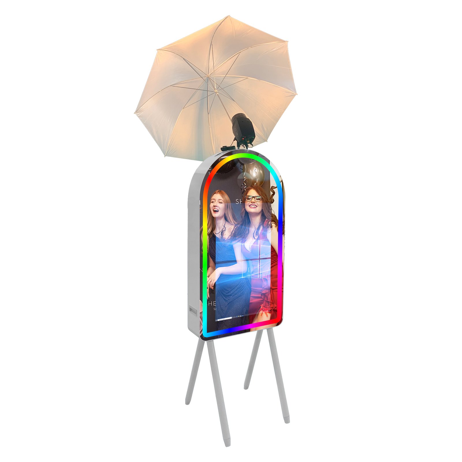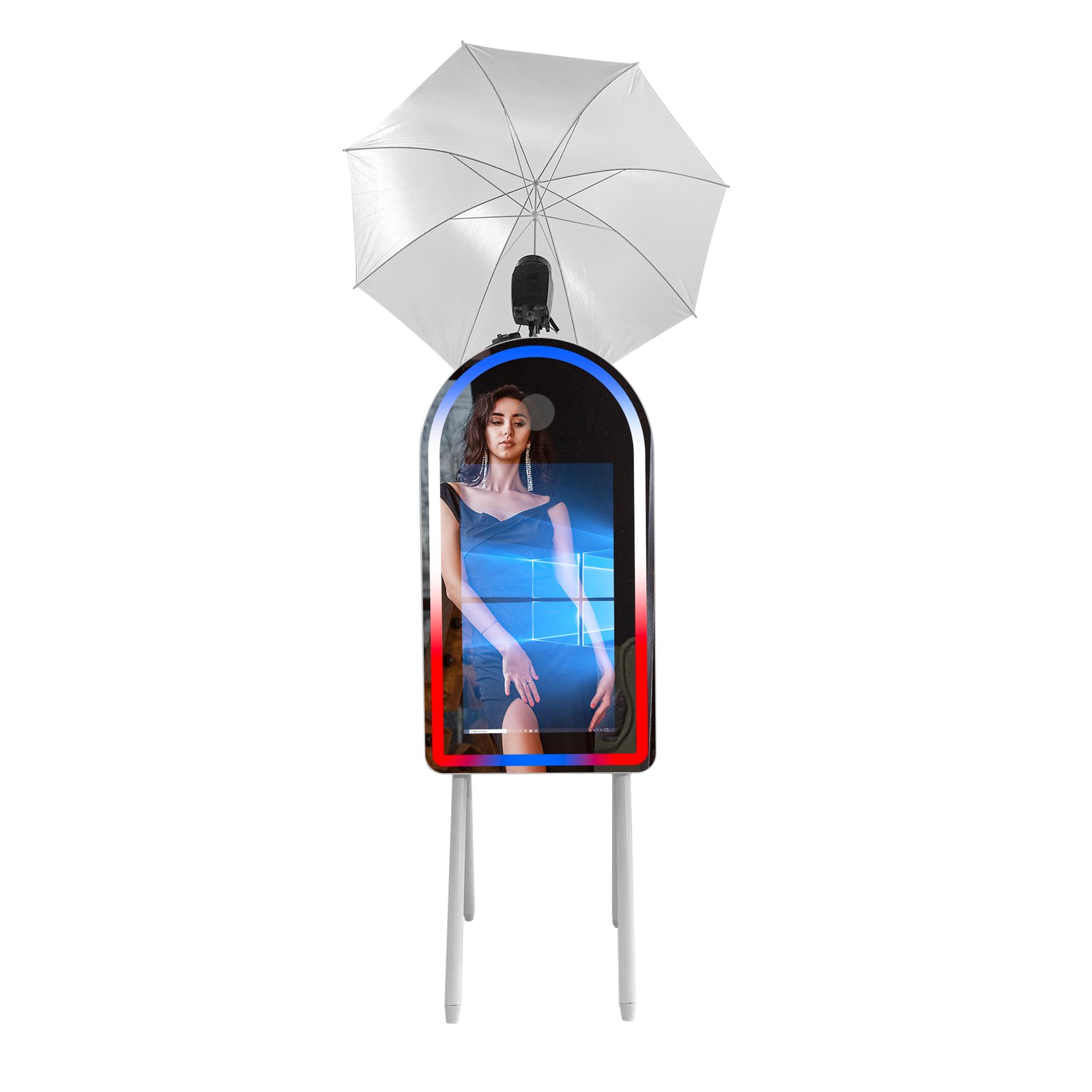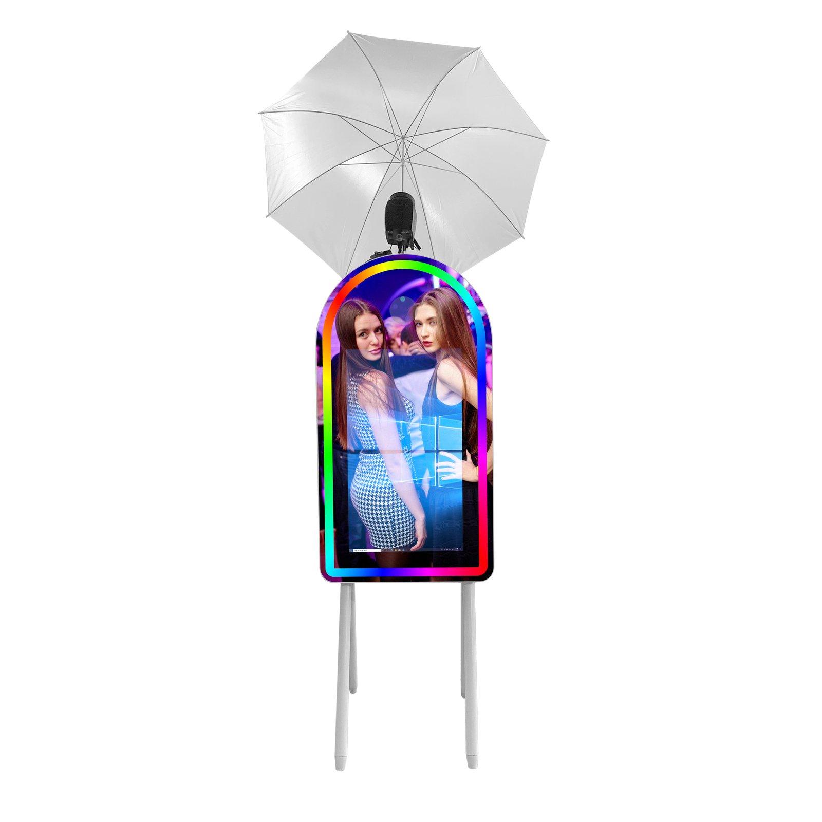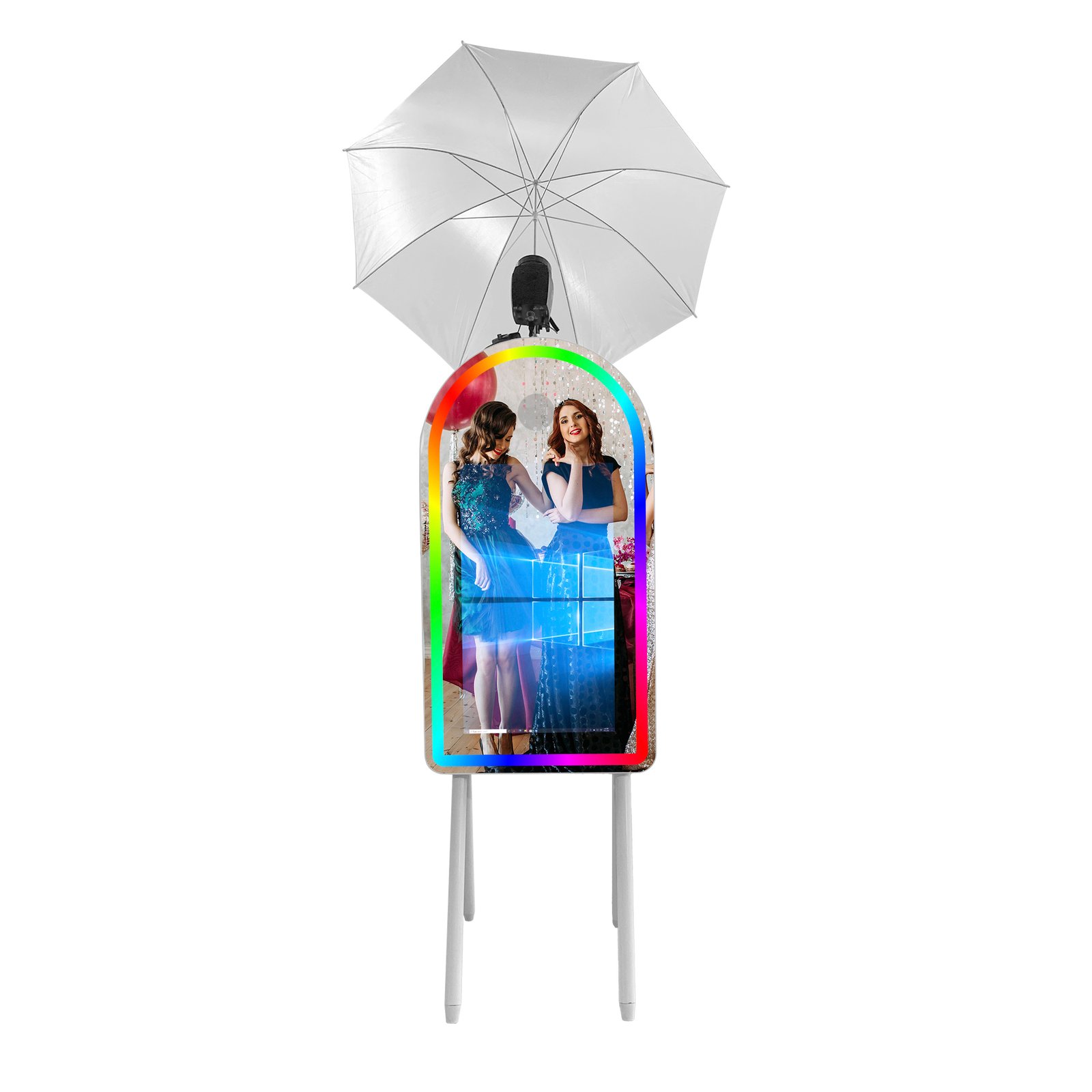 50″ mirror+32″ touchscreen with curved top mirror photo booth, net weight: 38KG