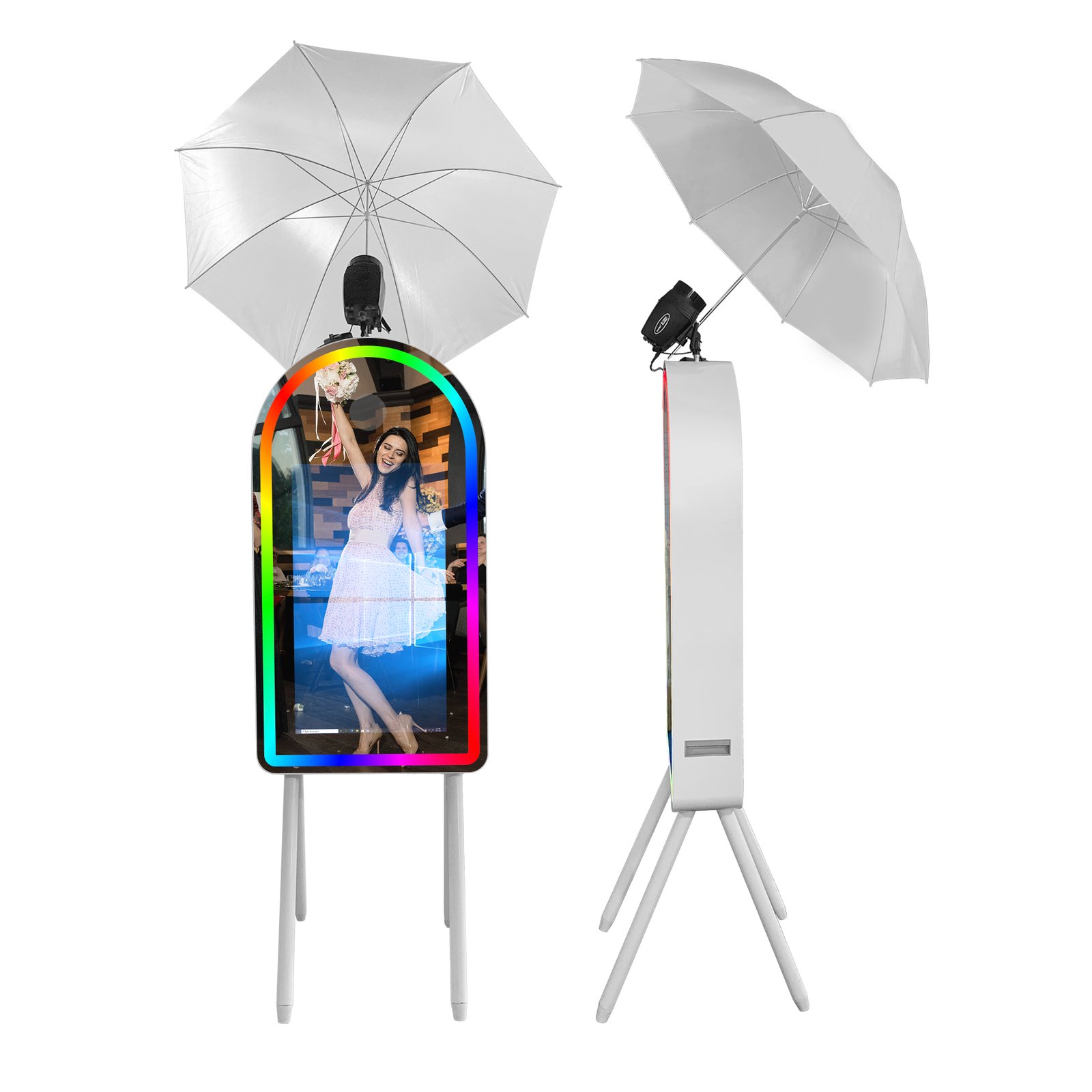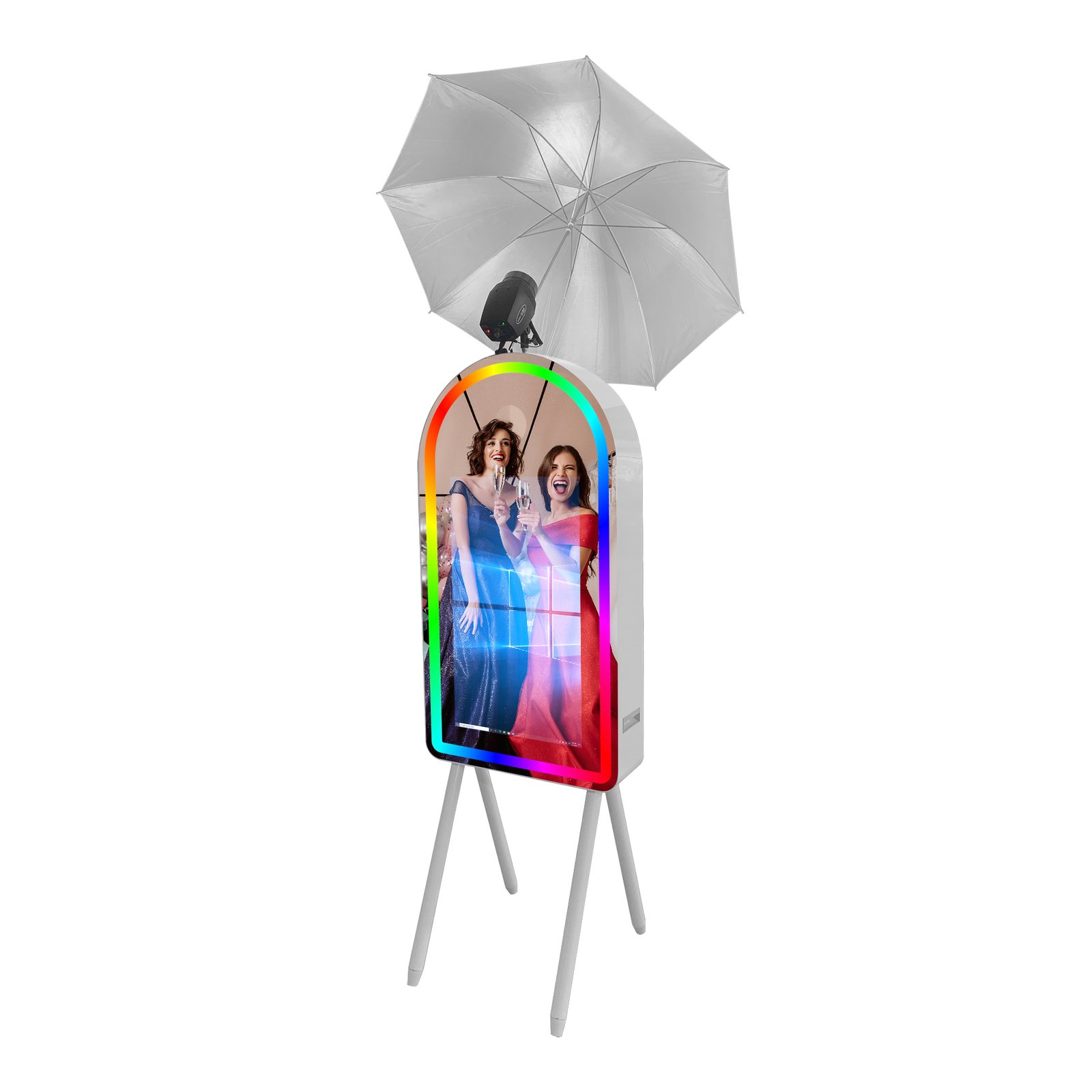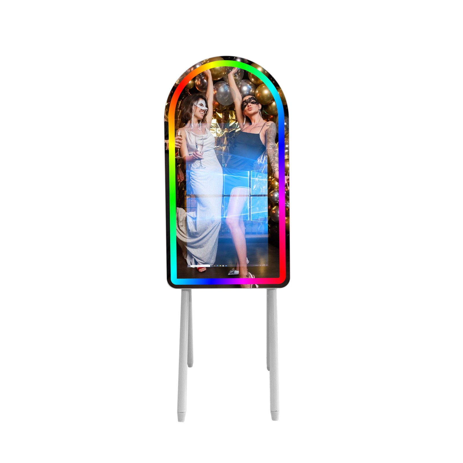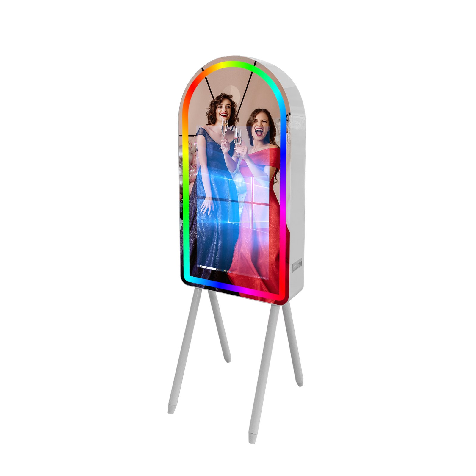50″ mirror+32″ touchscreen with curved top mirror photo booth, net weight: 38KG
