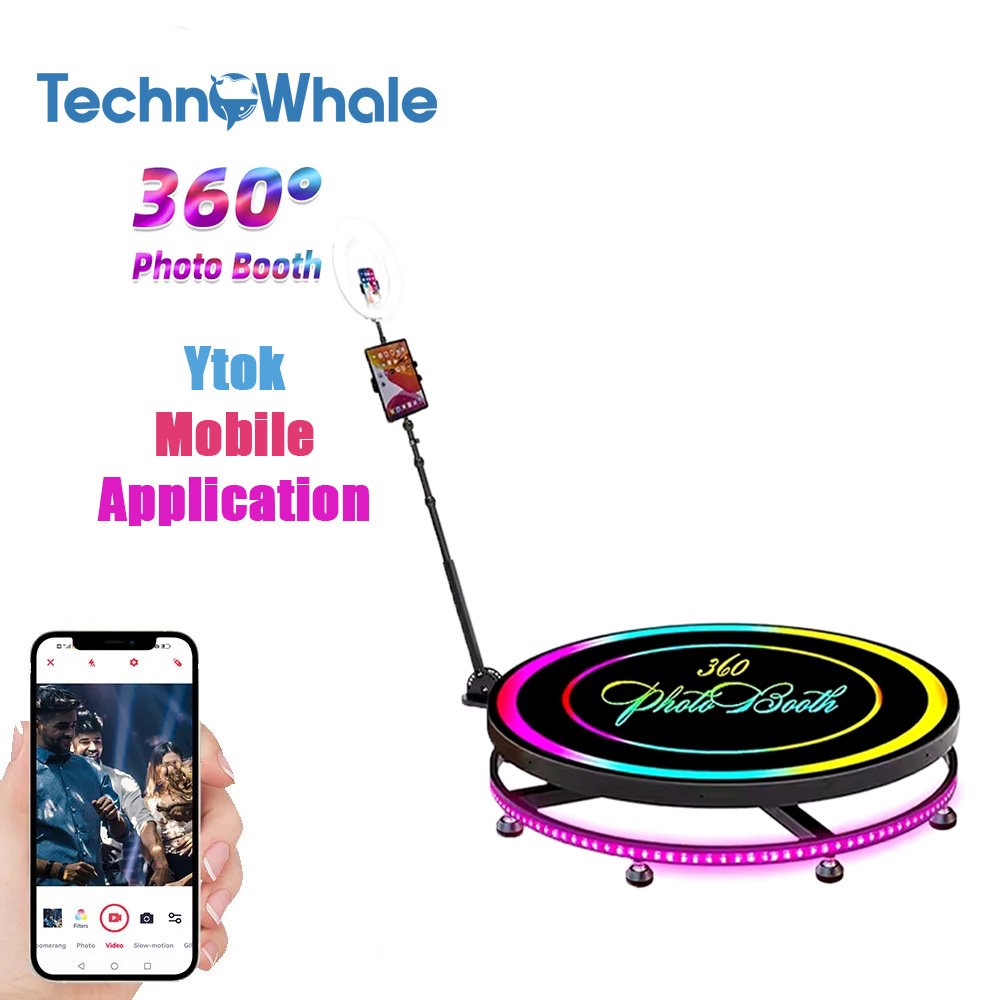 TechnoWhale 360 Photo Booth Video Spinner with 360 degree Rotating Selfie Machine Size 80cm Fits for 3 persons with Ytok Mobile Application