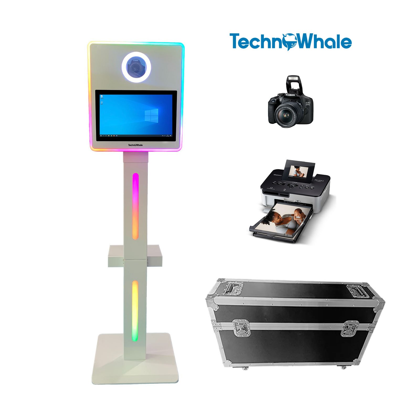 TechnoWhale TW-156X DSLR Photo Booth Machine with 15.6 Inch Touch Screen LCD RGB Light Strip and Canon 2000d Camera (B2B Rental Unit)