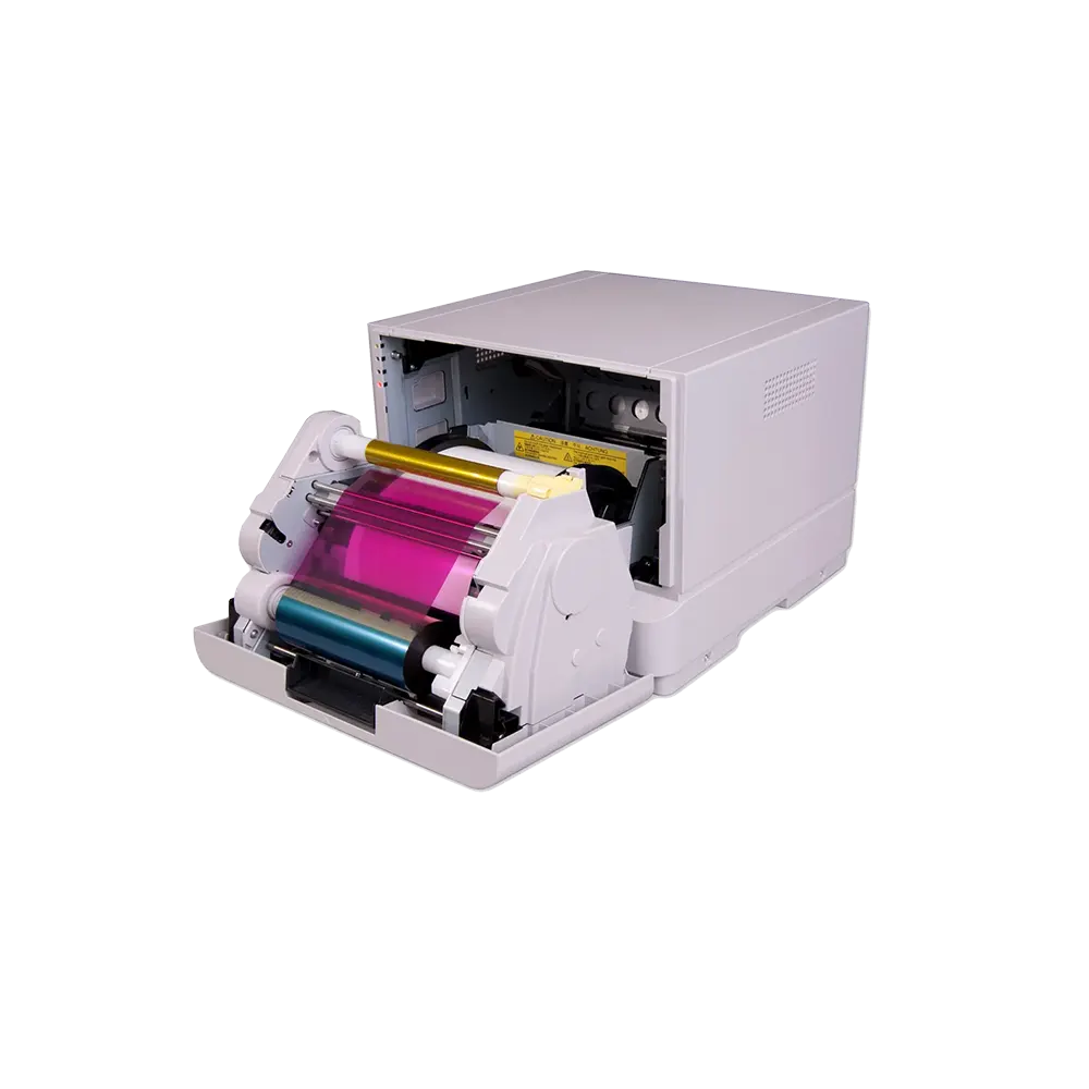 Tuned to work at high-speed and high-capacity, the printer can output 6×4″, 7×5″, and 8×6″ prints. It uses continuous rolls of paper that produce up to 700 print each, also it allows you to switch between a gloss or matt finish without changing the paper.