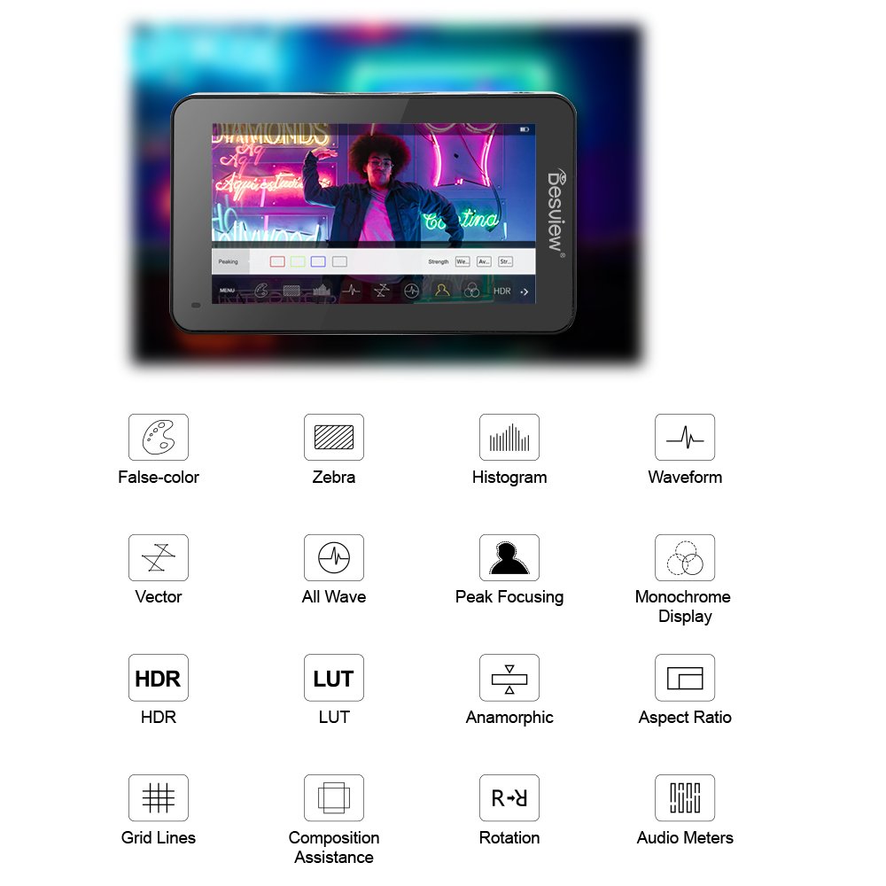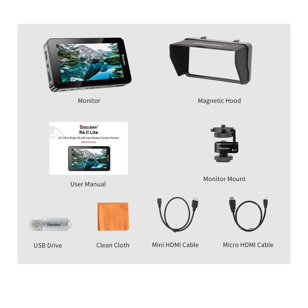 Desview R6II Lite High Brightness Compact 4K Camera Monitor 5.5 inch Touch Screen with 1600 Nits 4k P30 HDMI HDR Monitoring