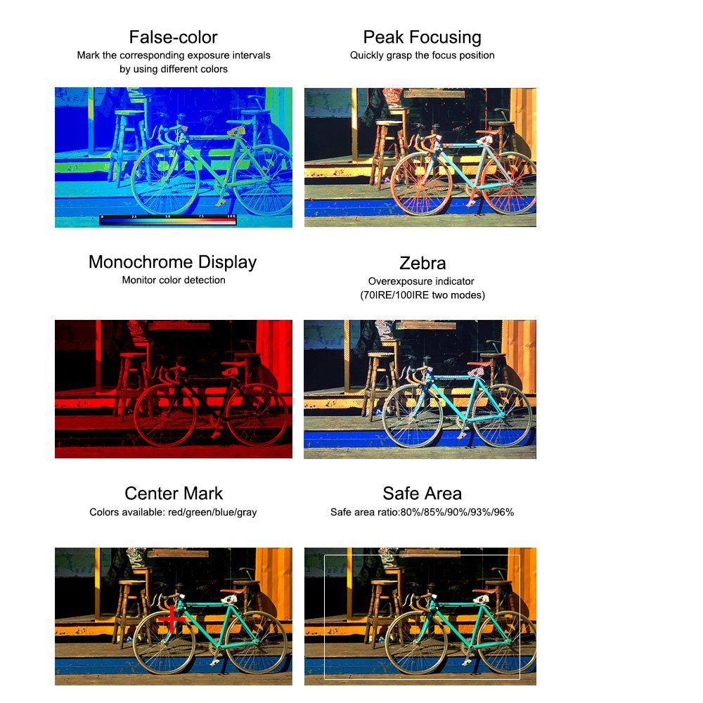 ![]() | Complete Monitoring Features Equipped with complete auxiliary shooting functions, including full waveform, color temperature,peak focus, pseudo-color, deformation function, zebra line, still image, and other professional software functions, making shooting simpler |