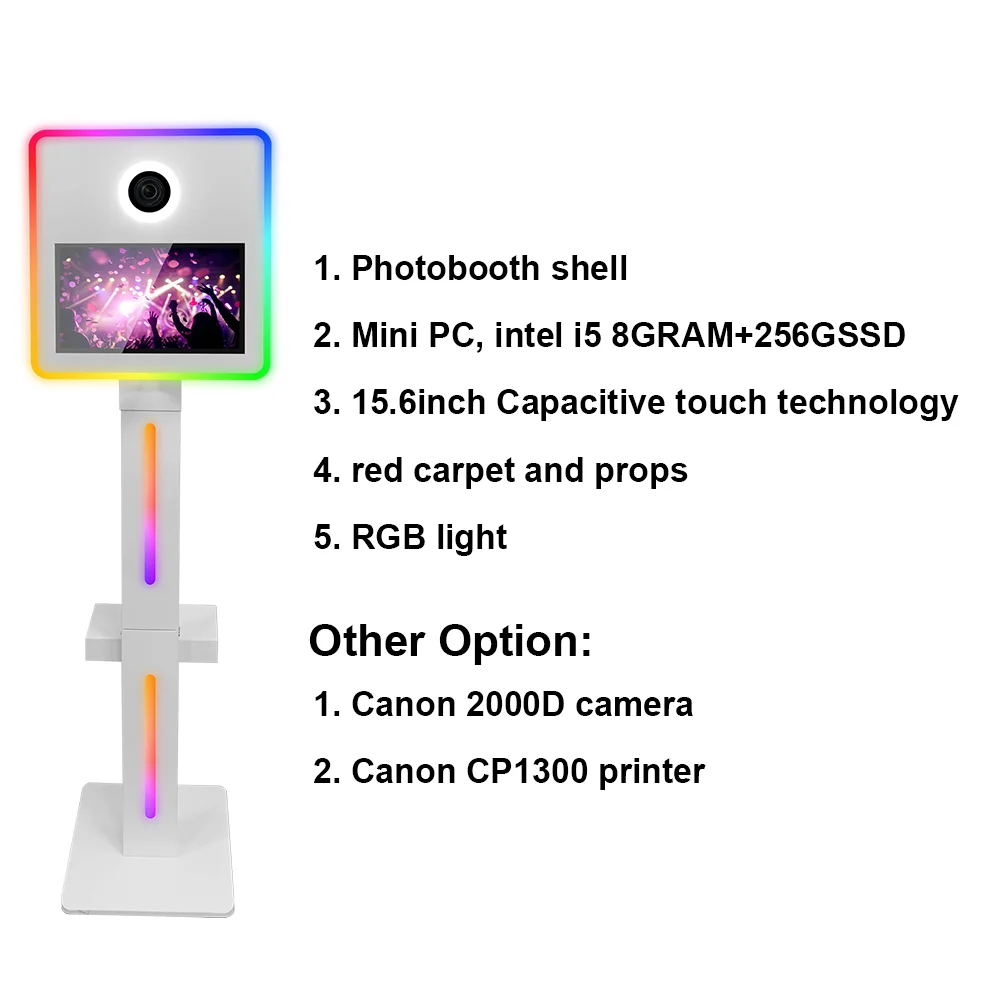 TechnoWhale TW-156X DSLR Photo Booth Machine with 15.6 Inch Touch Screen LCD RGB Light Strip and Canon 2000d Camera (B2B Rental Unit)