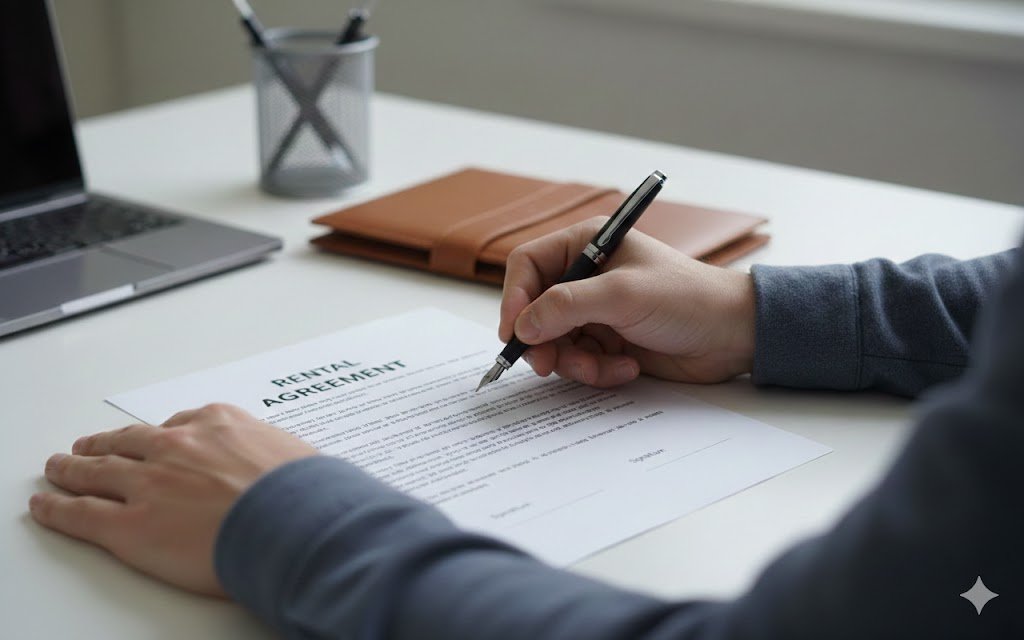 Review the rental terms and sign the agreement to secure your booking.